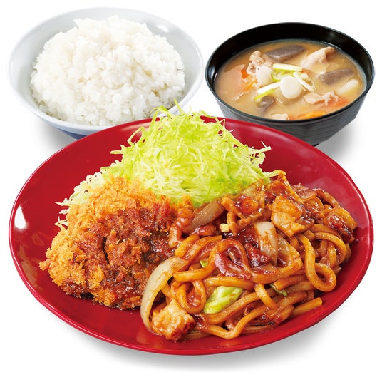 ■ホルモン焼うどんとチキンカツの合い盛り定食