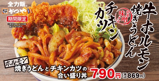 気持ち新たに始まる新年度に、全力で頑張る人を応援する新作「ホルモン焼きうどんとチキンカツの合い盛り」を2025年3月28日(金)より期間限定で販売を開始いたします。