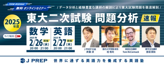 【無料ウェビナー開催】「2025年度 東大二次試験 問題分析速報」2/26・27開催!英語塾 J PREPが英語・数学の分析速報をライブ配信!