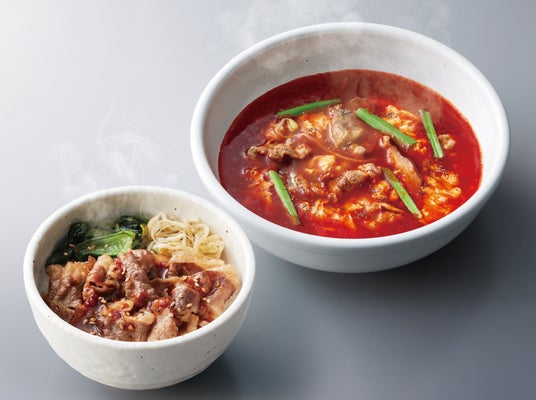 「【名物】ユッケジャンスープとミニカルビ丼セット」 「【名物】焼きたてのカルビ丼」がミニサイズになって登場!お好みの麺類やスープをメインに楽しみつつ、「ミニカルビ丼」で看板商品もセットでお召し上がりください。 <商品ラインナップ> ・「【名物】ユッケジャンスープとミニカルビ丼セット」950円 ・「たっぷり野菜スープとミニカルビ丼セット」950円 ・「盛岡冷麺とミニカルビ丼セット」1,050円 ・「王道カルビラーメンとミニカルビ丼セット」1,150円 ◼️販売方法:店内、テイクアウト、各種デリバリーサービス ※定食はテイクアウト、各種デリバリーサービスを実施しておりません ※一部店舗では各種デリバリーサービスを実施していない場合がございます ※価格は全て税込です ※テイクアウトは+30円の容器代をいただいております(一部商品を除く) ※価格・内容は予告なく変更する場合があります