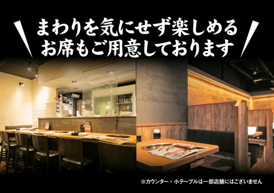 牛角では、7組に1組が「お一人様」でのご利用で、「4名様」でのご利用を上回る組数となっております。どなたにも焼肉をお楽しみいただけるよう、カウンター席や小テーブル、ボックス席など、様々なお席をご用意しております。