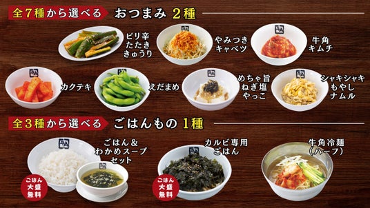 ■ご飯大盛り無料!満足ボリュームの「ひとり焼肉セット」気分に合わせて選べる2つのセットが新登場。3種のカルビを食べ比べる「カルビMIXセット 1,780円(税込1,958円)」は、とことんご飯に合うお肉を選びました。ご飯大盛り無料も嬉しいポイントです。牛角自慢のお肉3種を食べ比べる「上焼肉セット 2,480円(税込)」は、プチ贅沢したい気分の日にぴったりで、至福のひとり焼肉時間をお楽しみいただけます。 ※平日・アプリ会員様限定