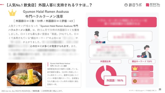 業界最大級のインバウンドビジネスメディア「訪日ラボ」及び 店舗向け集客一元化プラットフォーム「口コミコム」を運営する株式会社mov(代表取締役:渡邊 誠、本社:東京都渋谷区、以下mov)は、浅草エリアの飲食店に寄せられた最新の口コミデータから、独自の『インバウンド人気観光地ランキング』を発表しました。