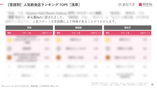 そのほか、言語別ランキングや口コミ分析の詳細は、調査資料をご覧ください。