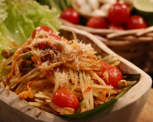 連日の猛暑で食欲が落ちがちなこの季節、体を内側からリフレッシュするスパイスの効いたタイ料理がビュッフェ台に並びます。刺激的な辛さとココナッツのコクが癖になる「レッドカレー」や、シャキシャキの青パパイヤに唐辛子やナンプラー、ライム汁にピーナッツを合わせ、ピリッと刺激的でありながら爽快な後味が魅力のタイを代表するサラダ「ソムタム」が登場。