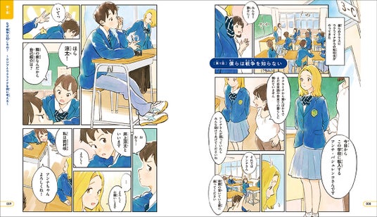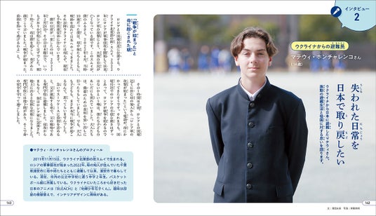 ◎避難民に取材した導入マンガ 各章の冒頭に計40ページのマンガが入っています。ウクライナ避難民の女子中学生と、日本の男子中学生の交流を描いた物語です。主人公の悩みや葛藤に共感し、戦争を自分ごととして考えるきっかけになります。