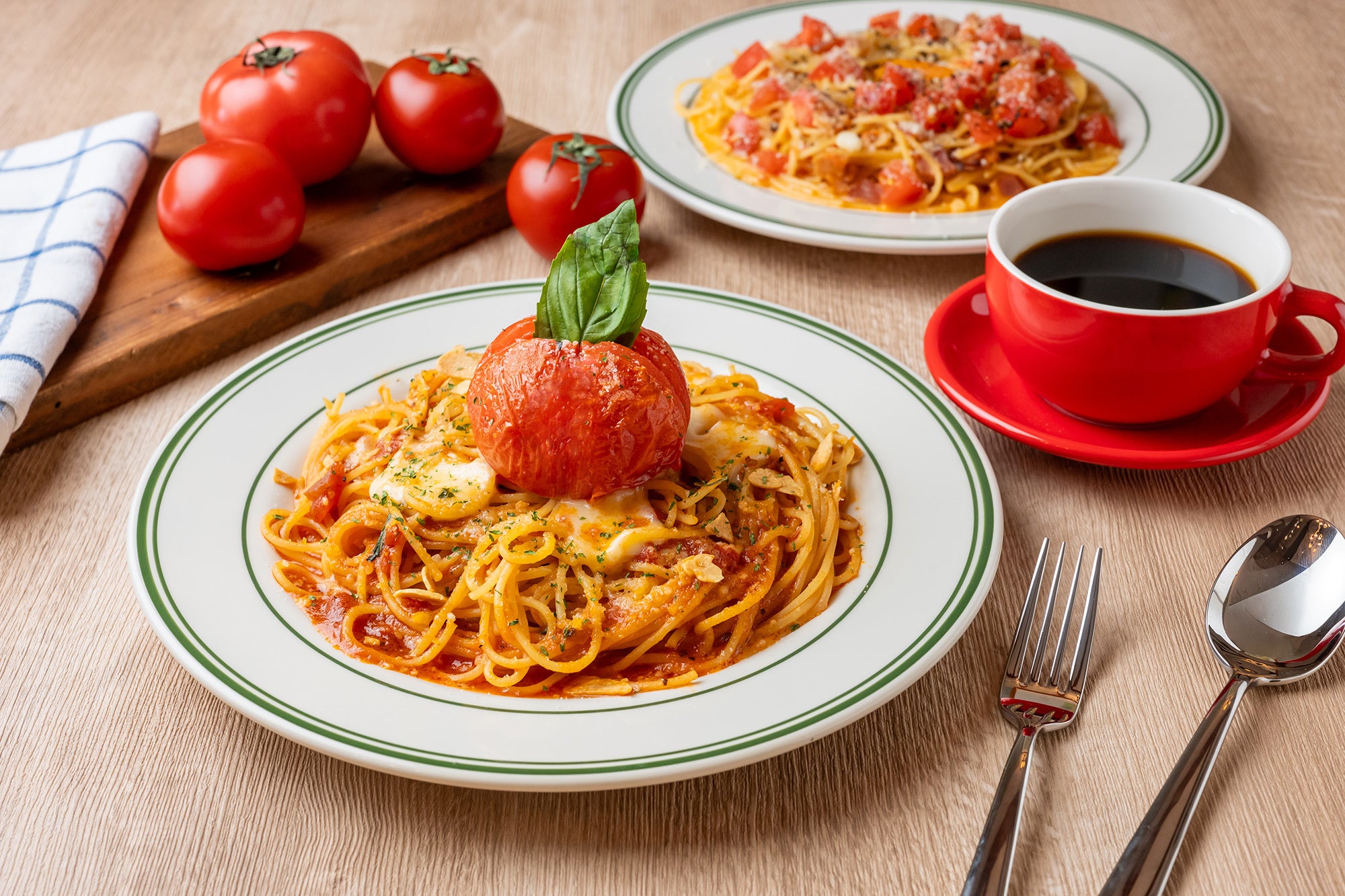 皆さまのライフスタイルに元気と彩りを添える“憩いの場”となれるよう、バリエーション豊かなメニューをご用意し、皆さまのご来店をお待ちしております。 【おすすめメニューのご紹介】 『スパゲッティ TOMATINA -トマティーナ-』 1,298円(税込) ふんわり甘い“丸ごとトマト”を贅沢にひとつ使った、店名を冠したスパゲッティ。トマトの旨味とチーズのコク、バジルの爽やかな香りが口いっぱいに広がるヘルシーで心満たされるひと皿です。