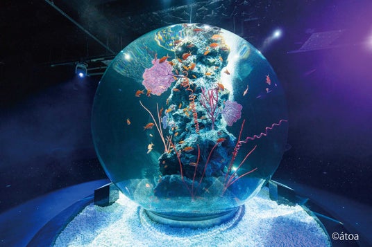 AQUARIUM×ART atoa は、アクアリウムに舞台美術やデジタルアートが融合した新感覚の水族館として、2021年10月に神戸ベイエリアにて誕生しました。館内には約60基の水槽がテーマ別のゾーンごとに配置され、国内最大の球体水槽「AQUA TERRA」や、水面の上を歩いているかのような感覚を味わえるガラス床水槽「MINAMO」など独創的な展示が点在しています。生きものとアートが織りなす幻想的な空間を体感できる関西屈指の都市型水族館です。