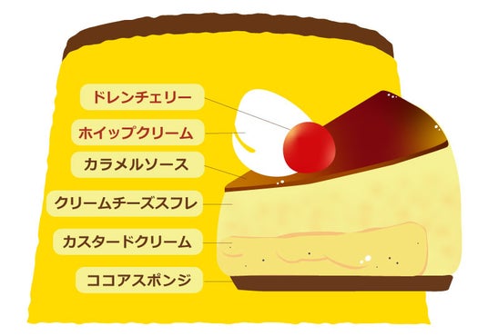 オーストラリア産クリームチーズのスフレ生地の中にジャージー牛乳を使用したなめらかなカスタードクリームを入れて焼き上げたカスタードプリン風のチーズケーキです。