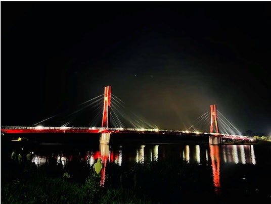 【福井県あわら市】北潟湖に架かるアイリスブリッジの夜間ライトアップ
