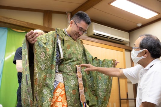 金剛流能「車僧」 関連催事・他 【変身・能役者体験】 場所:能面美術館 池田町の「水海の田楽・能舞」で実際に使われていた能装束と能面を着装、能面美術館内の舞台に立ち、地元保存会の方々の指導を仰ぎながら、所作体験と記念撮影ができます。能面を着けたときの視野の狭さや衣装の重さなどを体験することが出来る貴重な機会です。