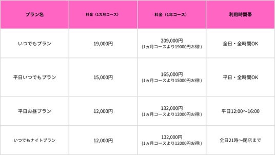 ・平日 いつでもプラン+ドリンクサブスク :19,800円