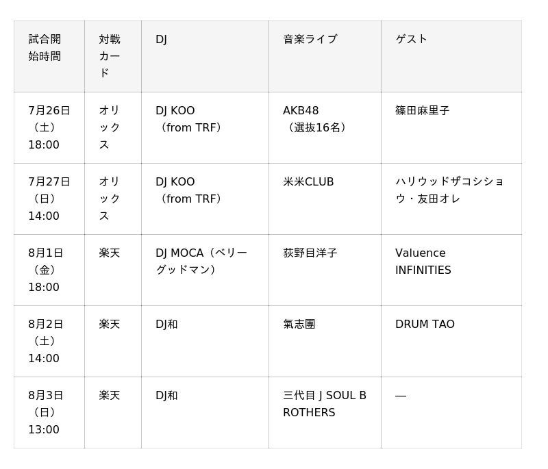 みずほPayPayドーム「鷹祭 SUMMER BOOST」試合日程