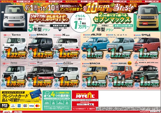 ジョイカルサービス「セブンマックス、NORIDOKI(ノリドキ)、ハーフマックス、コミかる」の新車・中古車のご契約