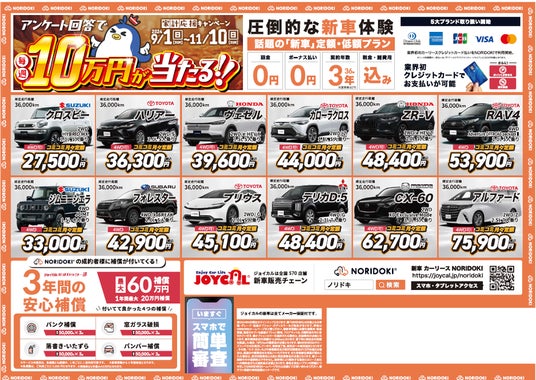 【秋の車購入フェア】ジョイカル、10週総額600万円が当たる「家計応援キャンペーン」開始 9/1~