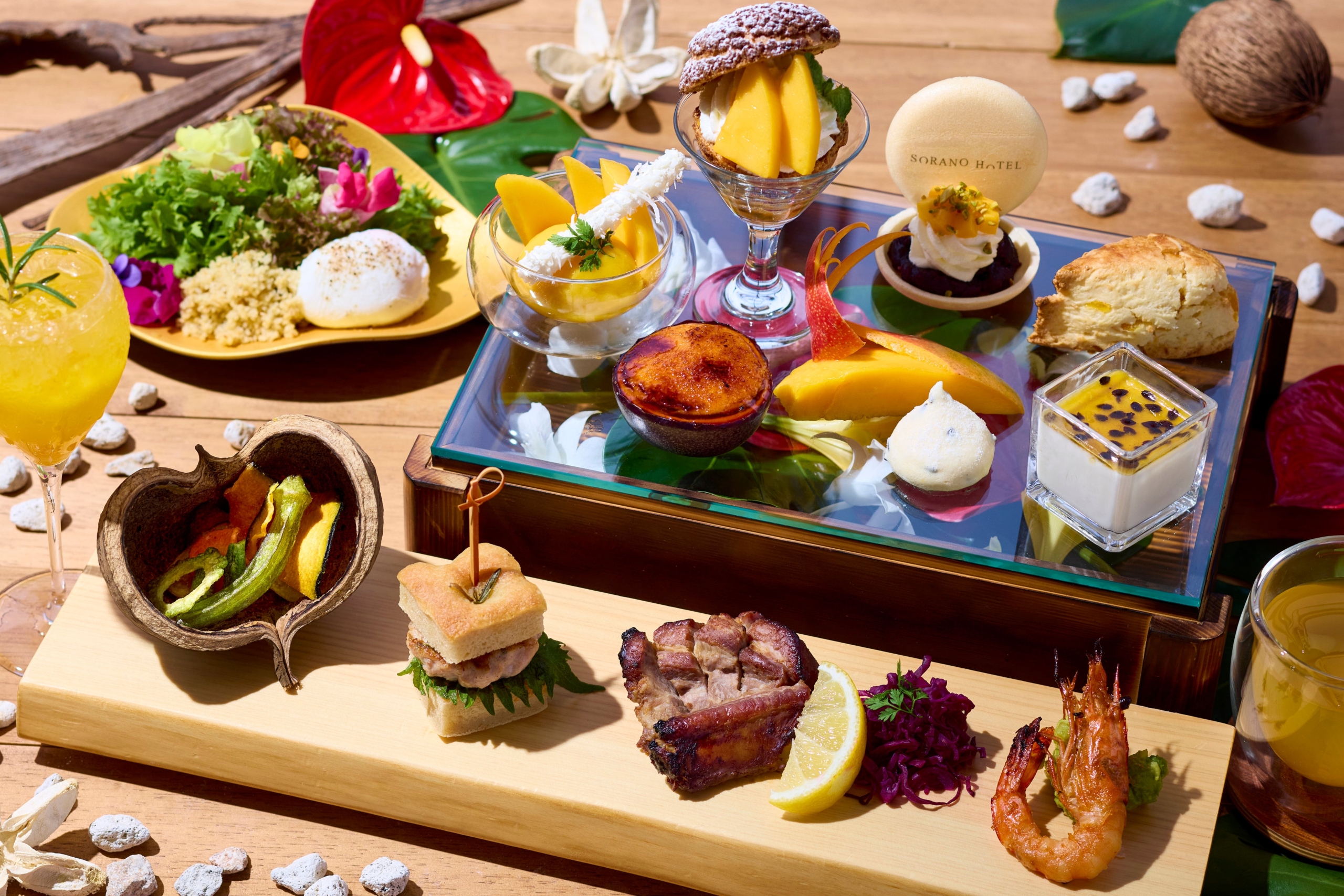 「SORANO HOTEL」では、2026年6月1日より、メインダイニング「DAICHINO RESTAURANT(ダイチノレストラン)」 にて、フレッシュな国産マンゴーとパッションフルーツを贅沢に使用しトロピカルな味わいを最大限に引き出した、期間限定アフタヌーンティー「マンゴーアフタヌーンティー」のご提供を開始いたします。