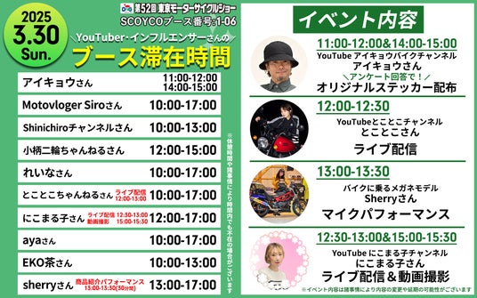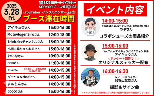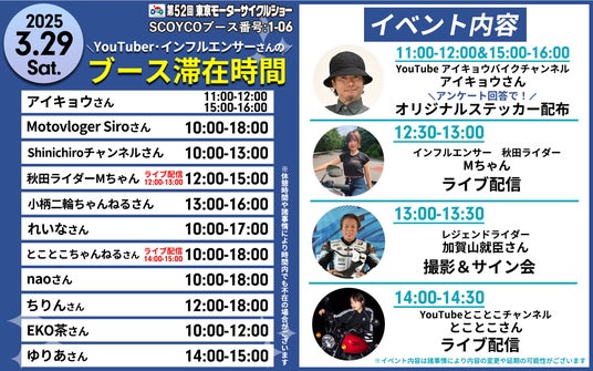 【第二弾】第52回東京モーターサイクルショーの「SCOYCO」ブース追加情報。Team KAGAYAMA代表:加賀山 就臣氏のサイン会やバイク系インフルエンサーが集結!イベント内容や参加者をご紹介!