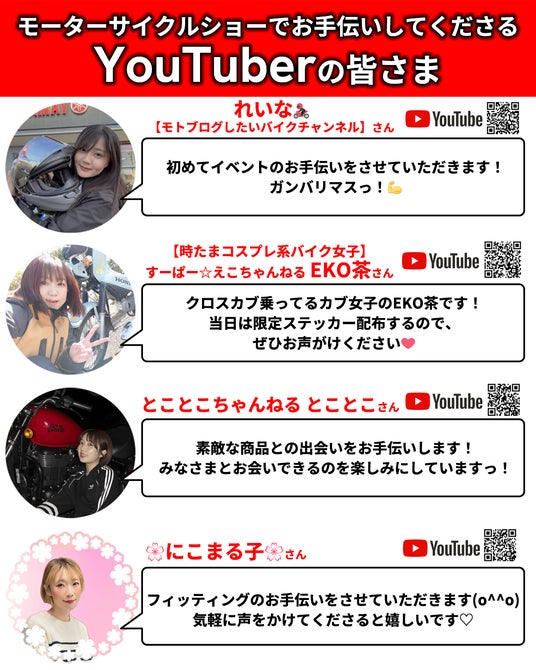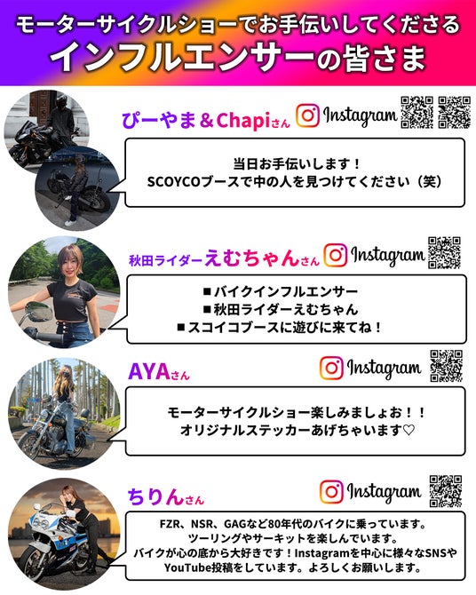 \当日参加してくださるバイク系インフルエンサーの皆さま/