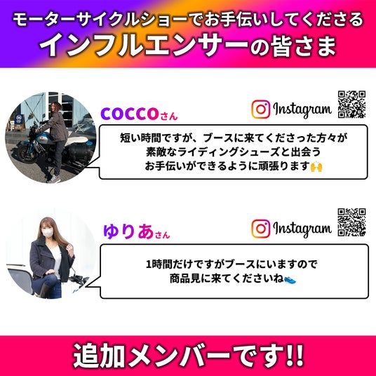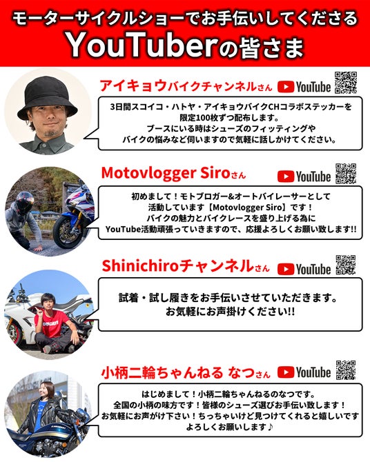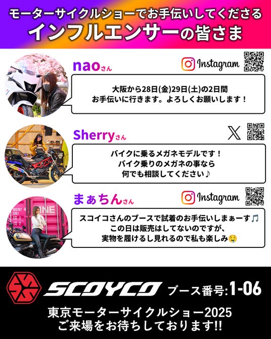 東京モーターサイクルショーのスコイコブースを盛り上げてくださるインフルエンサーの方々