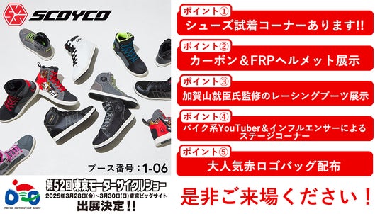 オートバイ販売の株式会社はとや(本社:埼玉県川口市、石鍋 卓社長)は、第52回東京モーターサイクルショー(2025年3月28日~30日・東京ビッグサイト・東1ホール 小間番号:1-06)において、日本総代理となっているオートバイギアのブランド「SCOYCO」ブースを出展いたします。