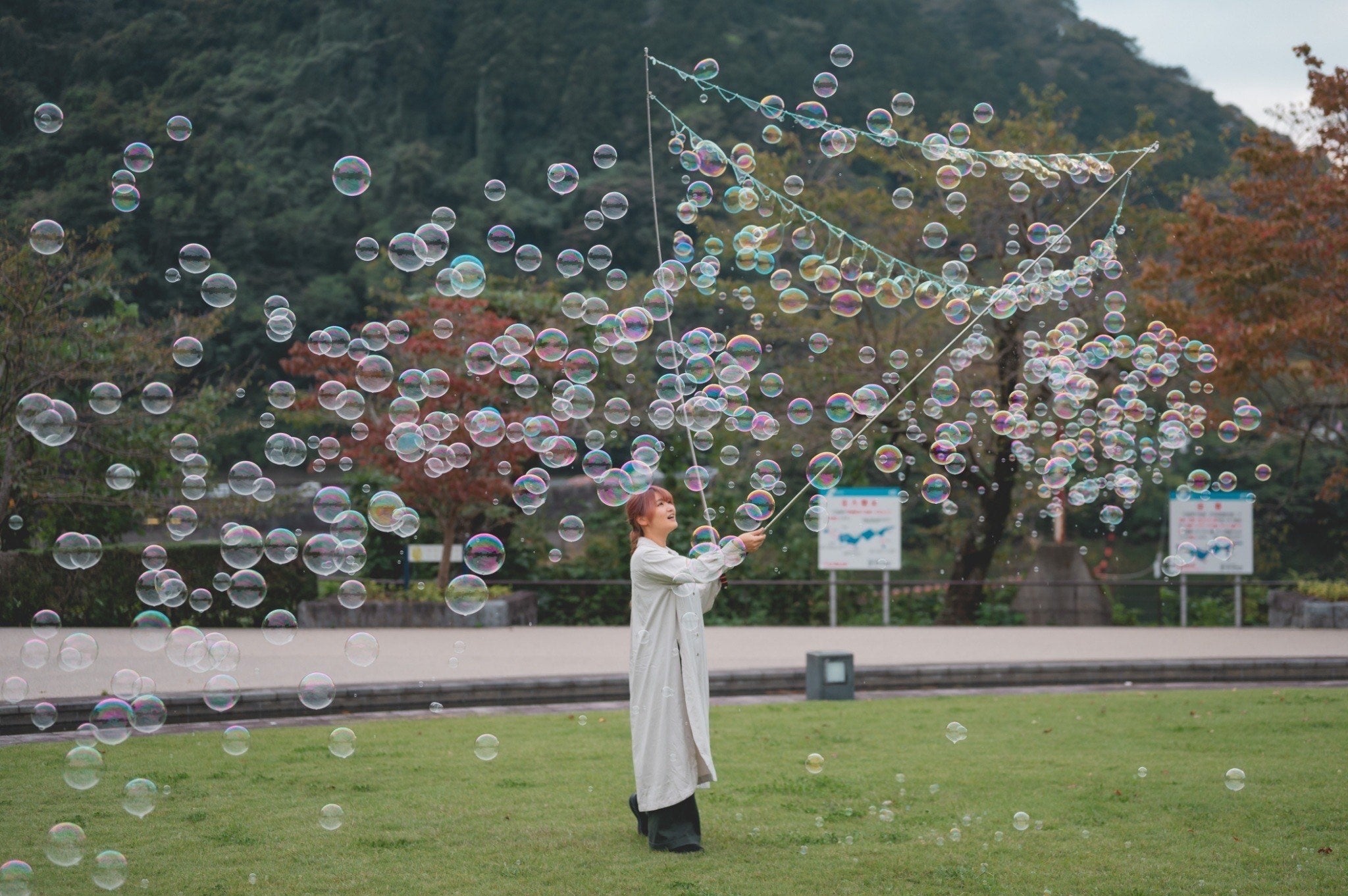 箱根の爽やかな新緑の中、大小さまざまなシャボン玉が空を舞う――。