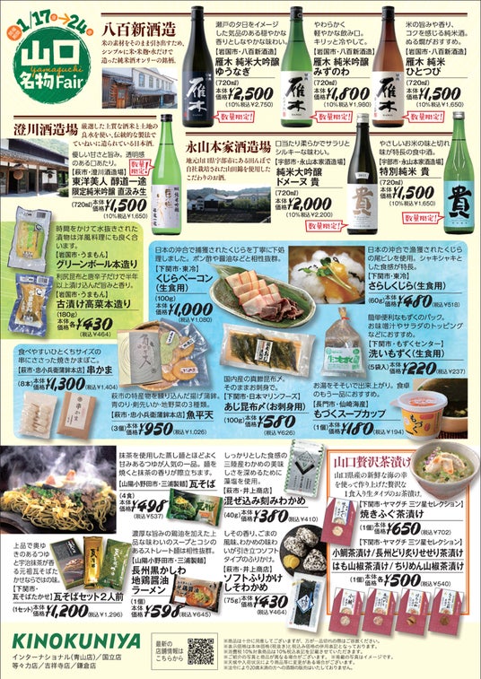 【紀ノ国屋】山口県の美味しい魅力を集めました!1月17日(金)より山口の味覚を満喫する「山口フェア」を開催!