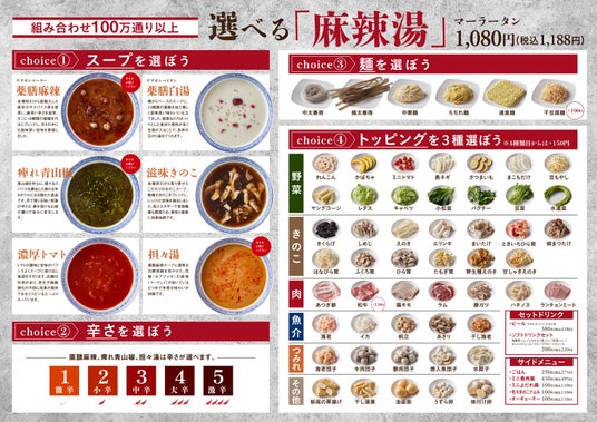 【組み合わせは100万通り以上】選べる麻辣湯スープ6種×麺6種×トッピング49種から自分好みの麻辣湯が池袋駅直結のルミネ池袋8Fでお手軽に楽しめます。3月10日(月)~