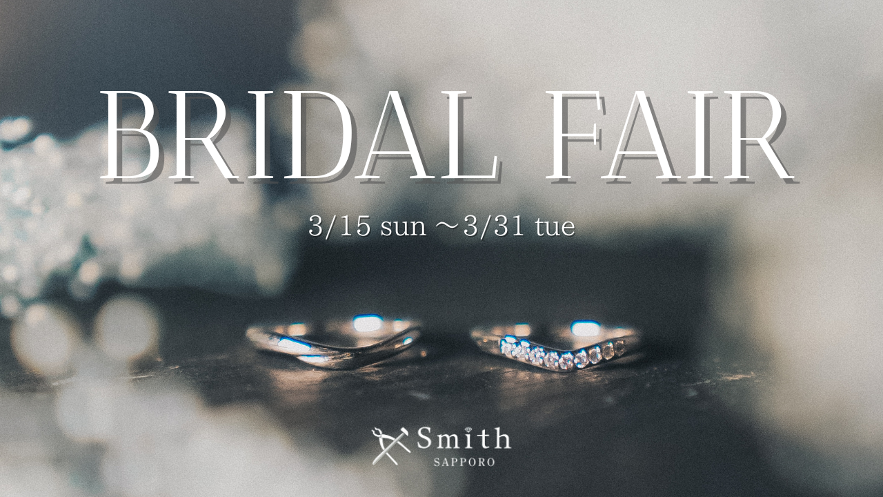 手作り結婚指輪・婚約指輪の専門店「工房Smith札幌本店」は、現在開催中のブライダルフェアにおいて、札幌近郊の多くのお客様よりお問い合わせをいただいております。新年度を控えたこの時期、より多くの方にゆとりを持って指輪作りを楽しんでいただけるよう、開催期間を3月31日(火)まで延長することを決定いたしました。