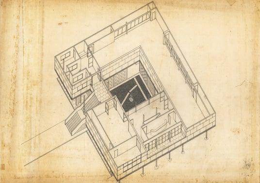 神奈川県立近代美術館(現・鎌倉文華館 鶴岡ミュージアム) 建築:坂倉 準三 図面所蔵:文化庁国立近現代建築資料館