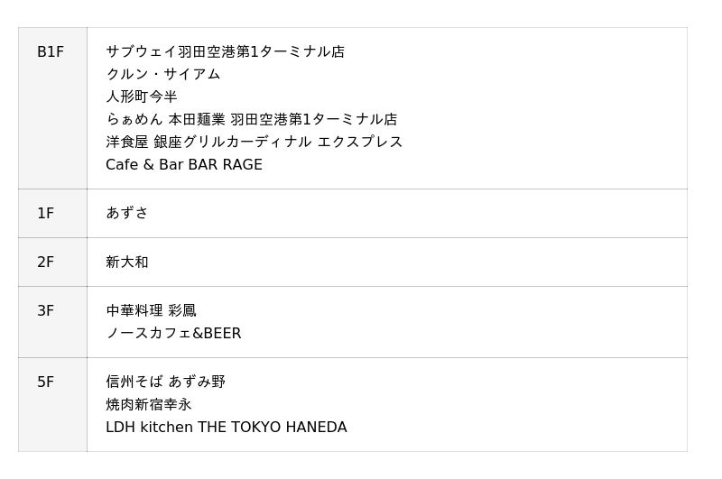 ●第1ターミナル(19店舗)