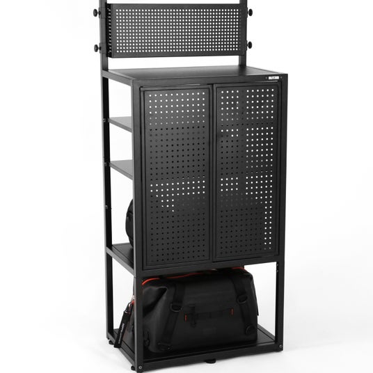マグネットが取り付けられる目隠し扉&パンチングボードは、メタル製で磁石に対応。市販のスマホマウントや電源タップなどを取り付けて、自分好みにアレンジすることが可能です。
