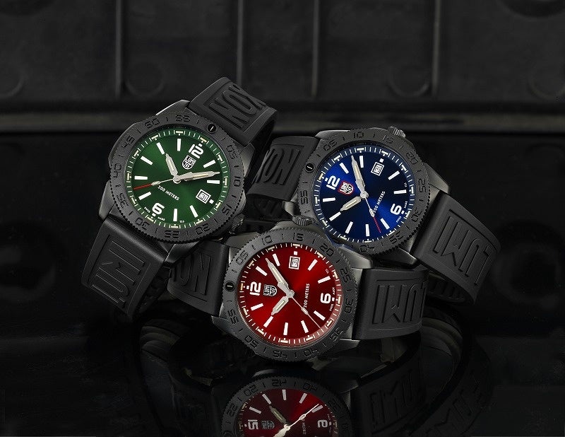 水中で活躍する人々のためにデザインされたこの新作は、高性能エンジニアリングと大胆で都会的なデザインを融合。 ミッドナイトタイドブルー、エメラルドグリーン、クリムゾンサージレッドの3色の鮮やかなサンレイダイヤルで、それぞれ異なるトーンで個性を表現をしつつ、耐久性、視認性、精度において高い基準を維持しています。