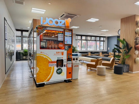 生搾りオレンジジュースの自動販売機を展開するIJOOZ(アイジュース)株式会社は、「姪浜ドライビングスクール」館内1Fロビーで、2025年1月21日に生搾りオレンジジュース自動販売機の稼働を開始しました。