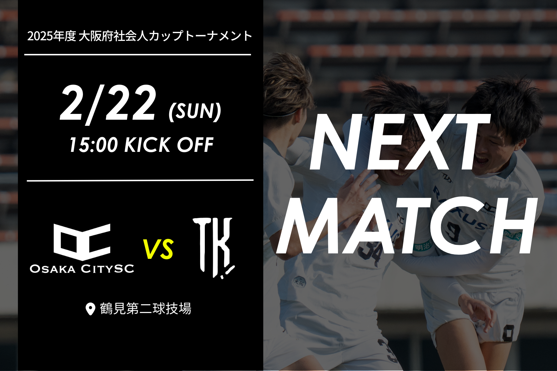 【試合告知】Osaka City SC出場、2025年度 大阪府社会人カップトーナメント| vs T.K.F.C 2月22日(日)15:00キックオフ