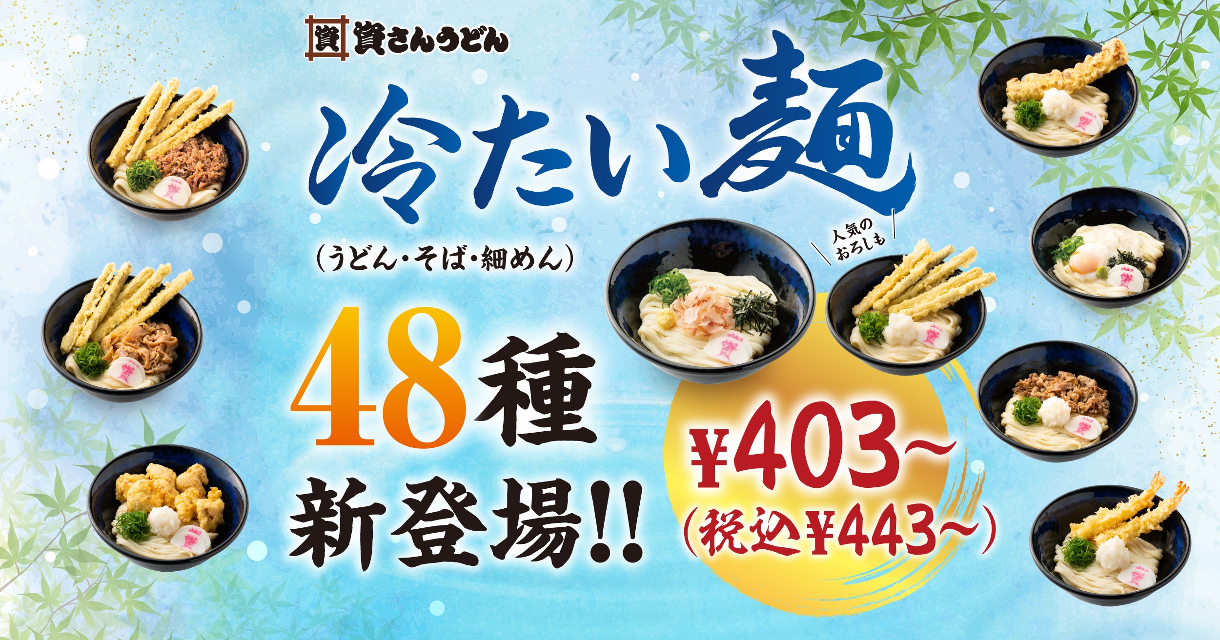 4/16(木)~資さんうどんの一部店舗に、新たに冷たい麺48種類が登場します。