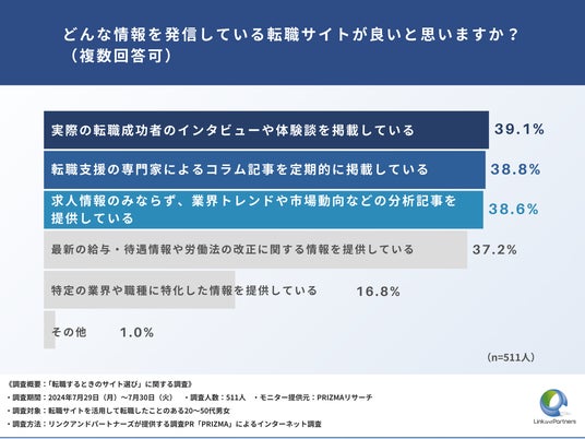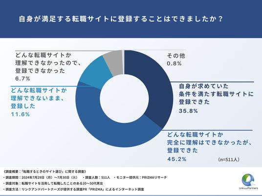 今回、株式会社リンクアンドパートナーズは、転職したことのある20~50代男女511名を対象に、「転職するときのサイト選びに関する調査」を実施しました。
