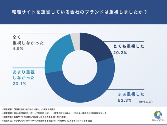 そこで今回、株式会社リンクアンドパートナーズ(https://www.prizma-link.com/press)は、転職したことのある20~50代男女511名を対象に、「転職するときのサイト選びに関する調査」を行いました。