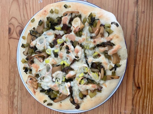 野沢菜とキノコのおやき風ピザ