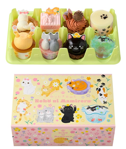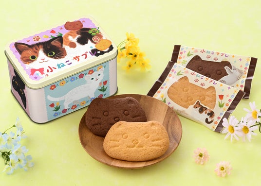 8種類の猫をプチケーキで表現した「ねこにまみれる(8個入)」に、丸まって寝ているとらねこをイメージした「とらねこのケーキ」 。そして、小ねこ形サブレをファンシーな缶にアソートした「小ねこサブレ」のラインアップです。