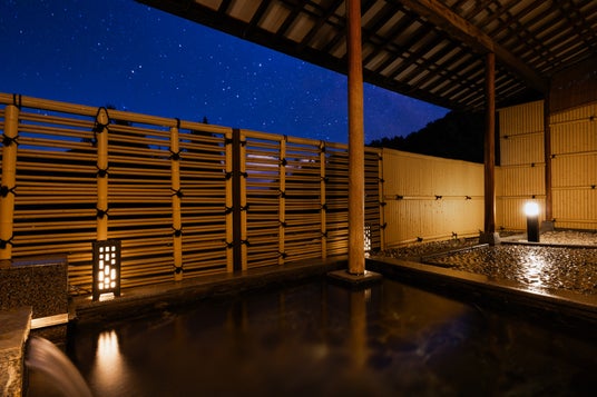 昼神温泉のpH9.7のアルカリ性泉質は「美人の湯」として広く知られ、株式会社ポーラ発行の「美肌温泉証」を取得していることでも、美肌効果の実感に高い評価をいただいております。お客様にご好評いただいている2つの貸切風呂では、プライベートな癒しの時間をご提供いたします。