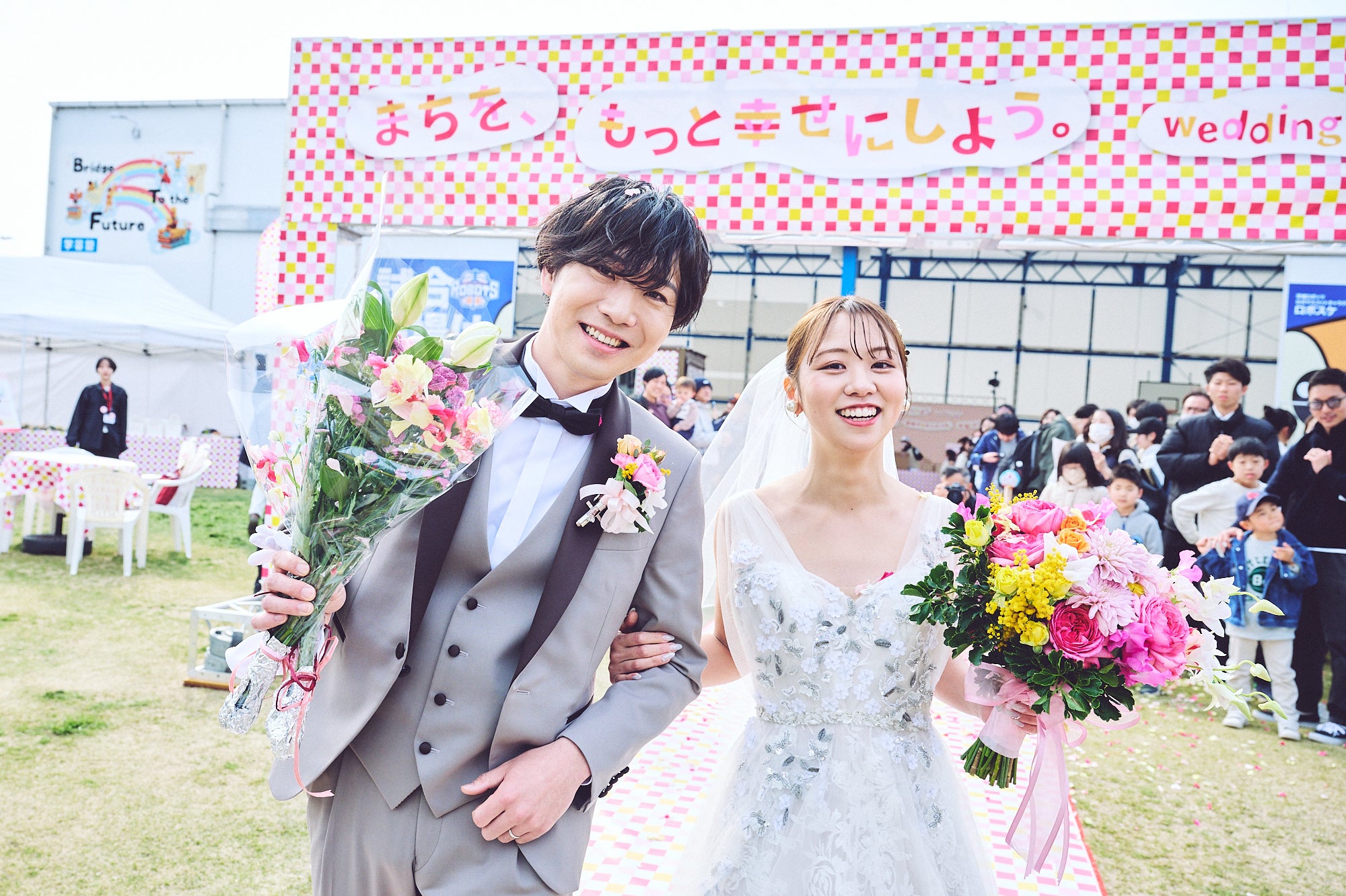 「wedding march 2026」は、当社の経営理念「結婚を、もっと幸せにしよう。」を社会実装するイベントです。 今年のテーマは、「祝福のシェア(共有体験)」。限られた方のみが体験する結婚式をまち全体へ開かれた「パブリックな場」で実施し、希薄化するコミュニティのつながり再構築や、地域課題の解決および魅力の再発見に貢献する目的で開催いたしました 。
