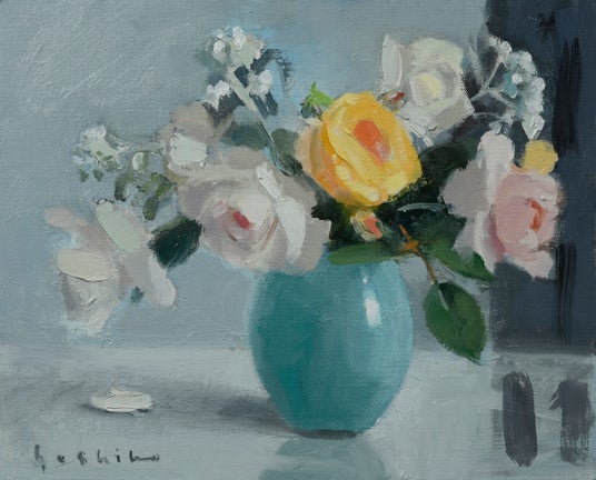 今回のご紹介は、画家の日常にある対象をじっくりと見つめることで、無駄をそぎ落とした、シンプルかつ透明感溢れる作品が人気の女流作家、山本佳子です。このたび、大阪では初となる個展を開催いたします。作家のメインテーマである人物画を中心に、風景画や静物画の油彩作品、さらに日頃から描いているグワッシュ(不透明水彩)による花々や人物など、バラエティ豊かな作品を展覧いたします。