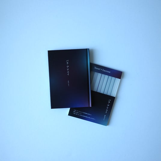 こちらの商品は、monogatary.comに投稿された新田ようの短編小説「パラ・プリュイ」(https://monogatary.com/story/471517 )を用いて開発されたもので、小説を構成する3つの印象的なシーンが潜在的に持ち合わせている香りを頼りに、3種類のお香を小説冊子と一緒に収録した実験的な書籍です。書店で購入し、家に持ち帰り、お香に火を灯し、香りに陶酔しながら物語の世界に深く没入できる商品となっています。