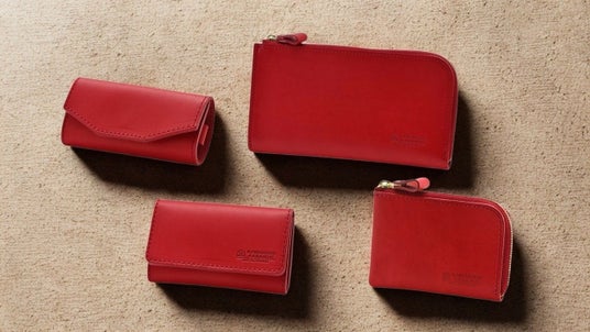 左上からキーケース、名刺入れ、長財布、ミニマム財布 トスカーノ リスシオレザー レッド