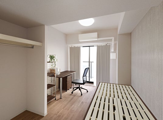居室には入居当日から快適にお住まいいただくため、生活に必要な家具・家電を備え付けており、2ドア冷蔵庫や朝の準備に便利な独立洗面化粧台も完備しています。