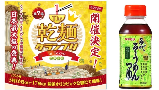 総合食品メーカーのヤマモリ株式会社は、2026年5月16日(土)・17日(日)に開催される第7回『The 乾麺グランプリ in Tokyo2026』に初出展。日本初のストレートつゆとして誕生し、今年で発売53年を迎えるロングセラー「名代(なだい)つゆ」を主役にした、渾身のアレンジメニューを披露します。