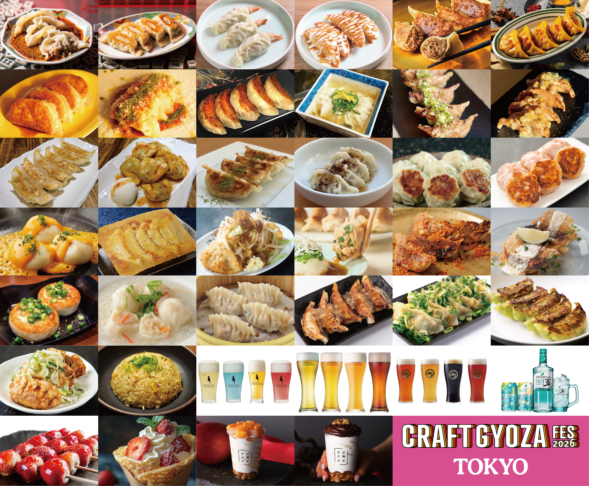 ■Instagram:craftgyoza.fes ★お得な前売り券は公式アプリやイープラス、アソビュー!で販売中:詳しくは HP にて ■《東京会場:出店ラインナップ一覧》 ▶︎GYOZA【ジャギ飯店】:無骨な町中華の焼餃子、甘辛よだれ水餃子/【ホンデポチャ】:丸ごとえびマンドゥ、ロゼヤンニョム揚げ餃子/【玉川精肉店】:黒毛和牛100% あらびき和牛餃子、ゴロゴロお肉のキーマカレー餃子/【GYOZA SHACK】:極あら挽きポークSHACK餃子、イタリアン!トマチー餃子/【肉玉そば越智×浅草開化楼】:謹製 旨味肉汁餃子、本枯れ節と真昆布のスープ 生姜餃子/【餃子とワイン 果皮と餡】:旨味溢れるコリコリ牛タン餃子、バター醤油の揚げトウモロコシ餃子/【赤坂ちびすけ】:琉球島豚 あぐー餃子、一口揚げ餃子 チリ&サワークリーム/【LIU'S gyoza】:ピリッと爽やか!ぶどう山椒餃子、もちっと食感水餃子!出汁梅だれ/【博多八助】:博多ひとくち餃子、明太チーズ餃子/【餃子の宮でんでん】:チーズのせ爆汁丸餃子、小江戸黒豚こく味羽根付き餃子/【赤坂サクラサカス】:東京背徳餃子 背脂ニンニク、爽快しそ餃子 しらすおろしポン酢/【餃子と〆の店 Nood e】:麻辣スパイス餃子、特製ゴルゴンゾーラ餃子/【大連餃子基地 DALIAN】:黒豚ジャンボ焼き小籠包/【香港点心楼】:カニあんかけ海老餃子、贅沢フカヒレ蒸し餃子/【京都餃子ミヤコパンダ】:さわやかに香るレモン餃子、白酢味噌仕立の九条ねぎだく京餃子/【じゃげな】:信州わさびビーフ餃子、信州味噌タレねぎ餃子/【チャーハンSTAND】:特製チャーハン ▶︎DRINK&SWEETS【サントリージン翠】翠ジンソーダ/【hokkaido brewing】:ナイアガラハニー、小樽ブルー ほか/【八ヶ岳ブルワリー TOUCHDOWN】:清里ラガー、ロックヴァイツェン ほか/【BRIMMER BREWING】:ペールエール、ゴールデンエール、ポーター ほか/【The 3rd. Shibuya】:生いちご飴、生いちごクレープ/【21時にアイス】:濃厚生チョコ、マンゴーとナタデココ ゴルゴンゾーラにポルチーニ、ハバネロにパクチー……。もはや「餃子」というジャンルを超えた美食の祭典ですね! 毎年大人気の「果皮と餡」の牛タン餃子や、肉汁溢れる小籠包など、どれから食べるか作戦会議が必要です。 3月24日から予約が始まるラウンジ席は、特にお子様連れやグループに大人気。行列を賢くスルーして、青空の下でクラフトビールと最高のペアリングを楽しんじゃいましょう!この記事のCategory