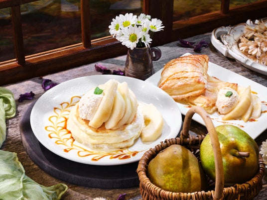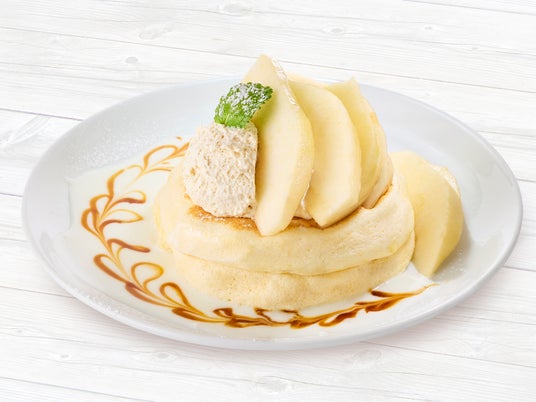 好評をいただいている期間限定の季節のパンケーキシリーズに「果物の女王」とうたわれる【ラ・フランスのリコッタパンケーキ】が登場致します!山形県上山市でこだわり抜いて育てられた旬の洋梨「ラ・フランス」は芳醇な香りと上品な甘さが特徴。今回はキャラメルクリームにヨーグルトソースも添えた「ラ・フランスのリコッタパンケーキ」に焼いたものとフレッシュな2種類の「ラ・フランス」の食感と味が楽しめる「ラ・フランスのさっくりパイ」も登場!※販売期間は11月7日(木)から2025年1月中旬頃迄を予定。