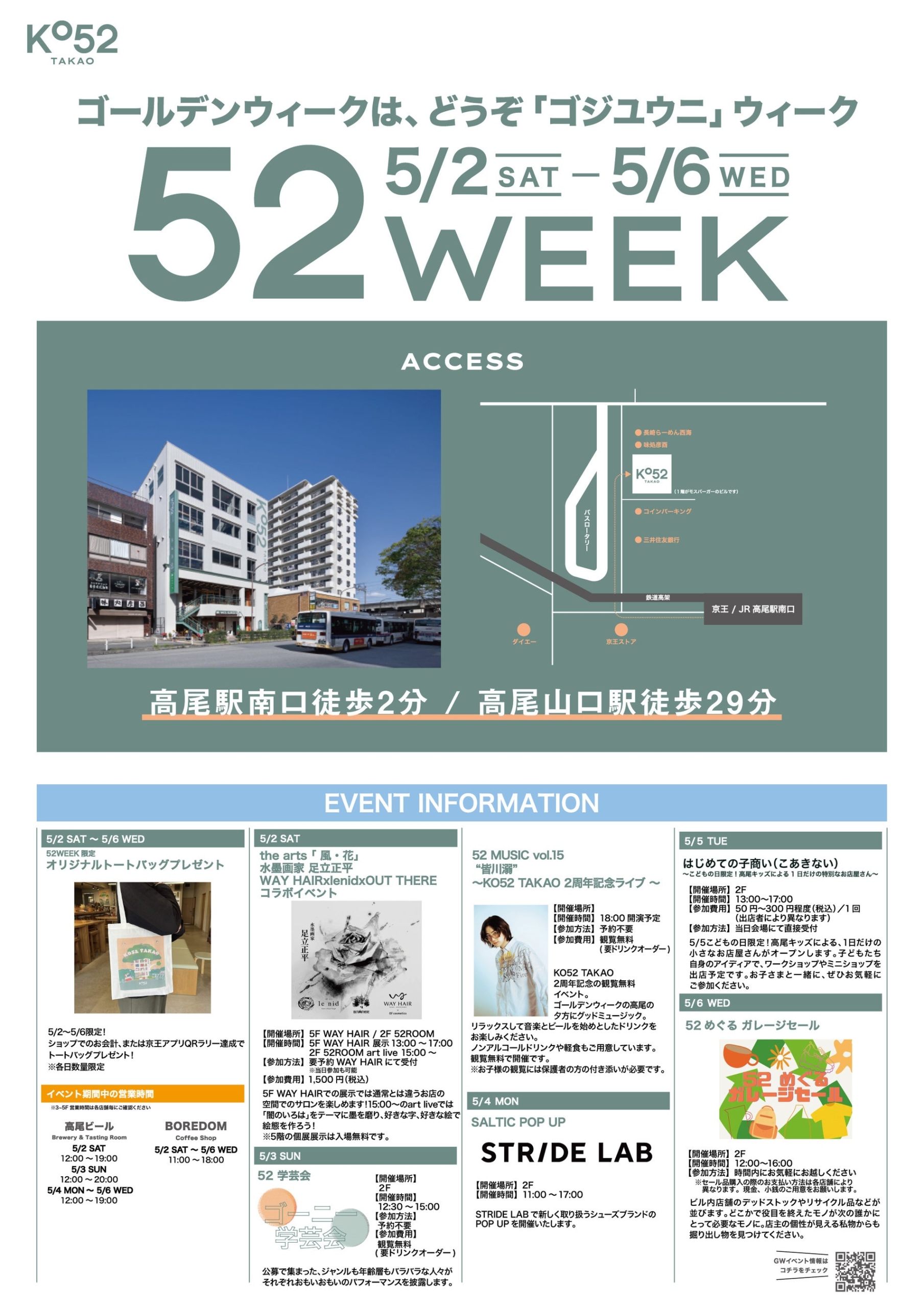 株式会社京王SCクリエイションは、2026年5月2日(土)から5月6日(水・振休)のゴールデンウィーク期間中、「52WEEK(ゴーニーウィーク)」を開催。