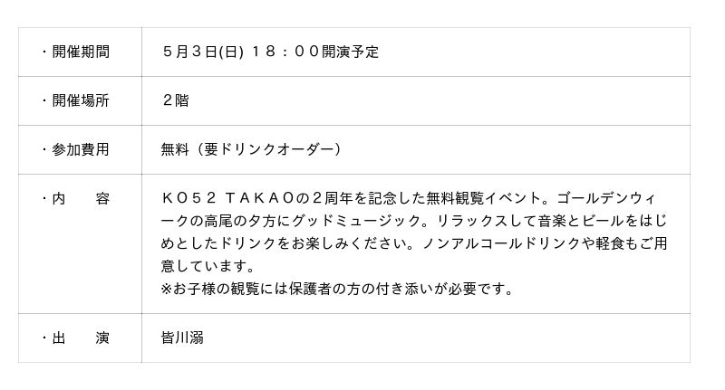 4.52MUSIC Vol.15 ~KO52 TAKAO 2周年記念ライブ~